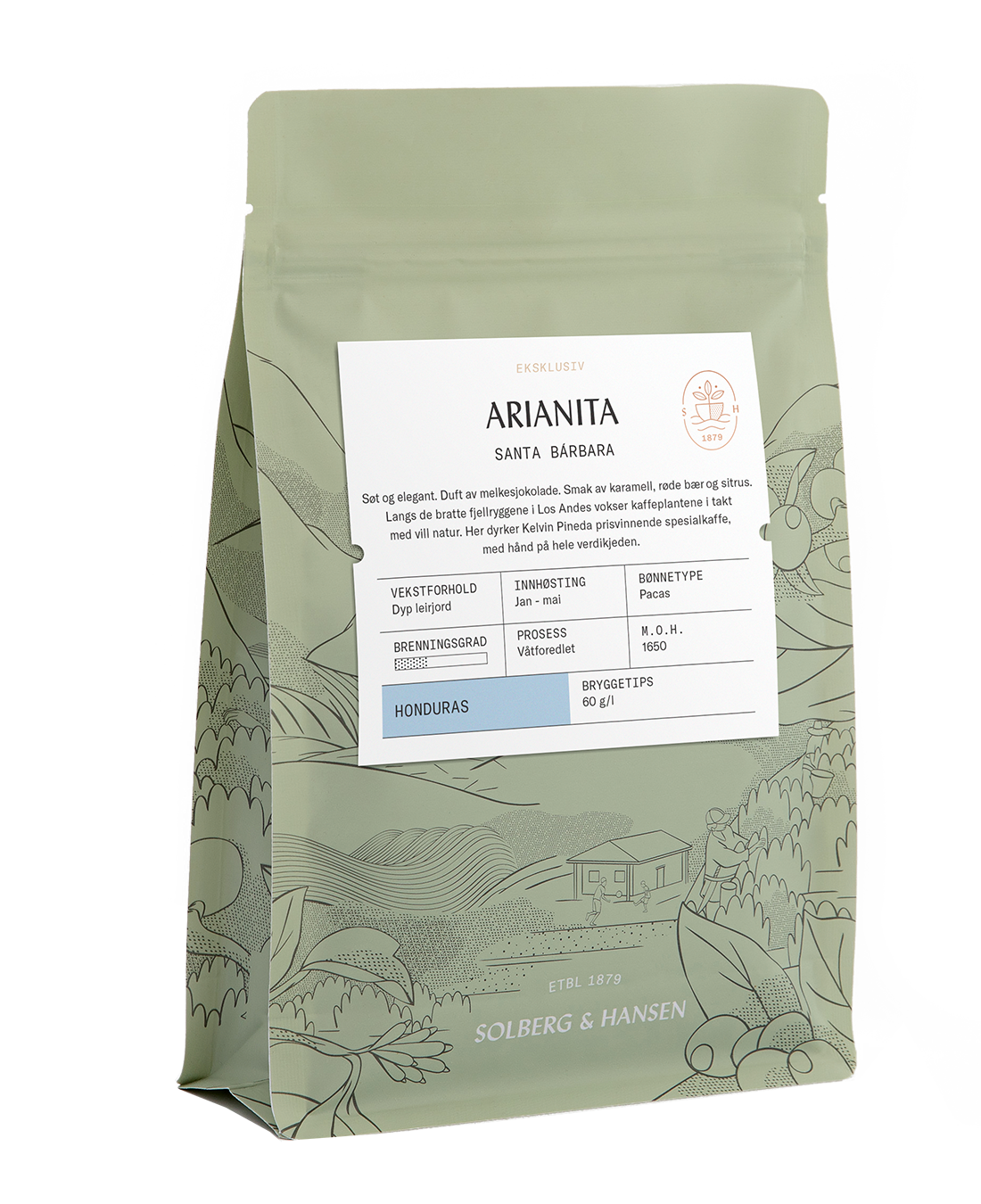 Kelvin Pinedas kaffereise begynte allerede i barndommen da han hjalp til på farens gård, hvor det ble dyrket både grønnsaker og kaffe. Da faren gikk bort i 2010 valgte Kelvin å fokusere kun på dyrking av grønnsaker for å gi familien økonomisk stabilitet. Lidenskapen for kaffe sluknet aldri for Kelvin og i 2017 fikk han mulighet til å gi kaffearven nytt liv da han ble tilbudt et stykke land fra sin svigerfar. Her startet han kaffegården Arianita og tok sine første steg inn i spesialkaffens verden.