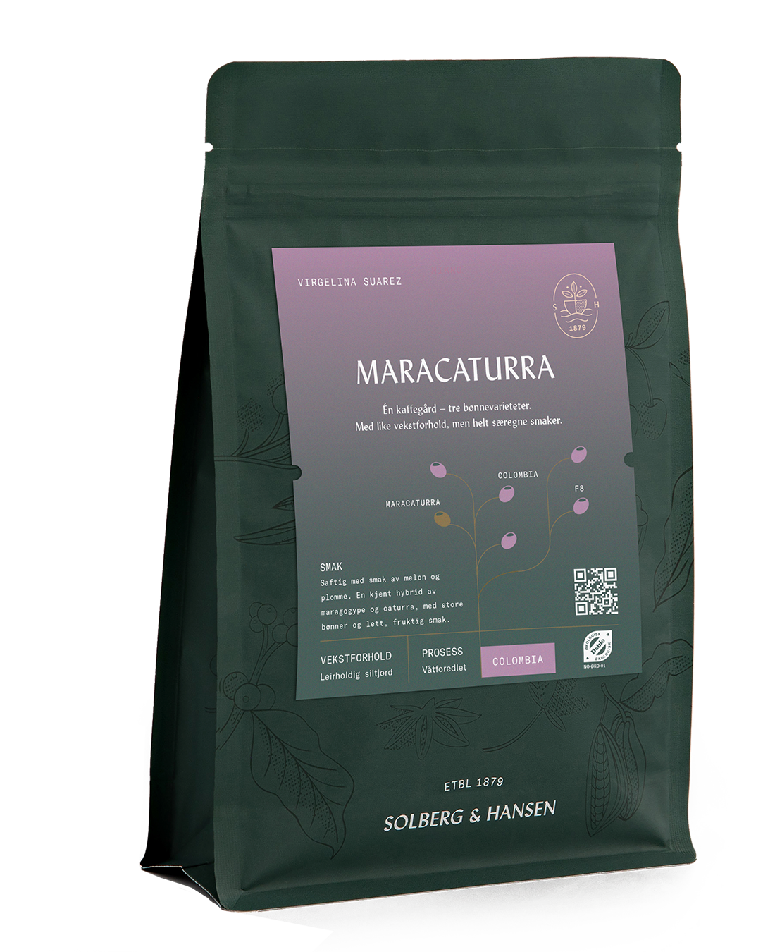 Sammen med den kvalitetsbevisste kaffebonden Virgelina Suarez lanserer vi tre ulike og helt unike kaffepartier fra hennes gård El Triunfo i Planadas i Colombia. Tre kaffepartier med tre ulike bønnevarieteter; maracaturra, colombia og F8. Alle med like vekstforhold og prosessering, men med særegne smaksnoter. Smak kaffene mot hverandre, og opplev de ulike nyansene fra hver bønnetype.