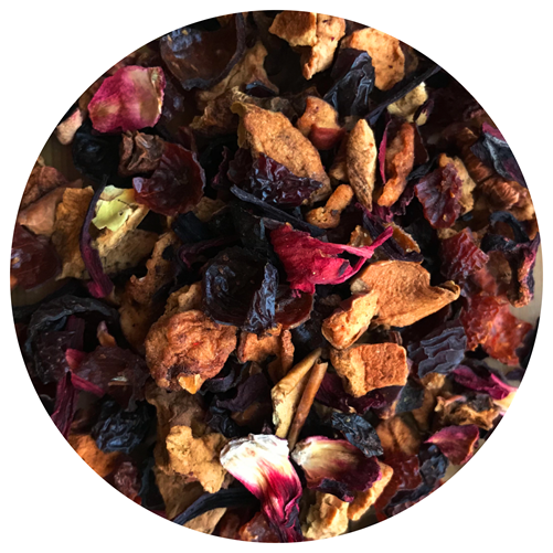 Ingredienser: eplebiter, nypeskall, hibiskus, aroma, kiwibiter, jordbærbiter.