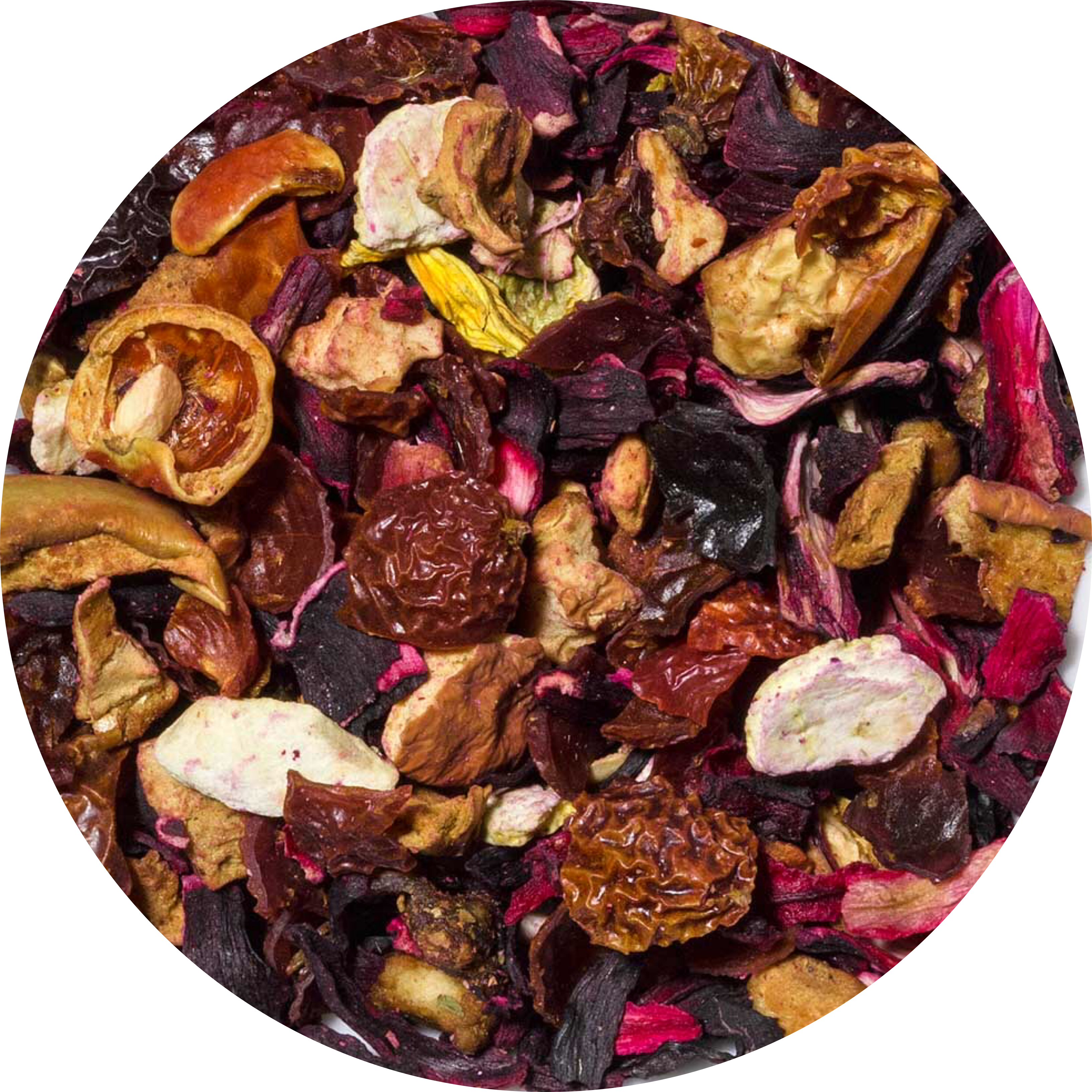 Ingredienser: hibiskus, nypeskall, eplebiter, sitrusskall, aroma, solsikkekronblader.