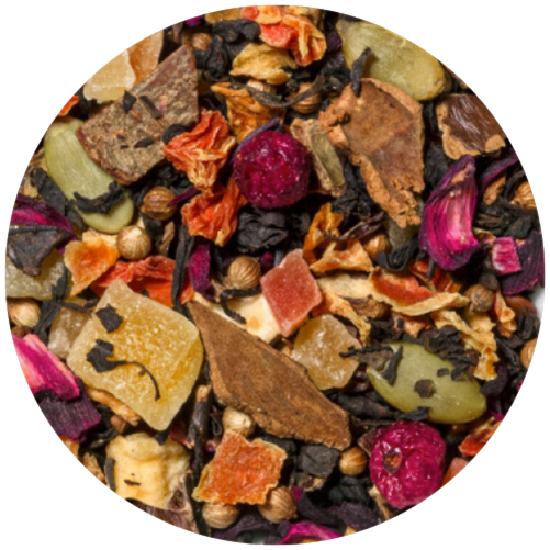 En varmende og syrlig bærblanding med en fyldig smak av søte krydder, og et hint av sort te.