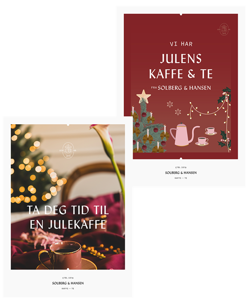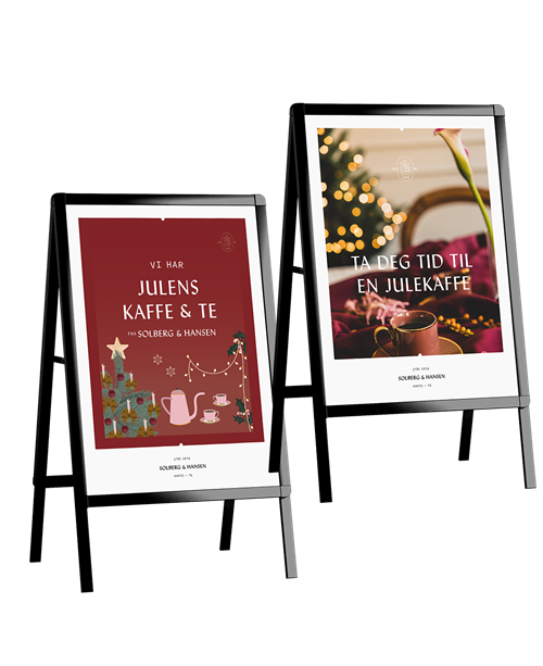 Bruk julens markedsmateriell for å skape fokus og stemning. Bukkeplakaten brukes i en bukk for å skape oppmerksomhet og trekke folk inn. Den kan også brukes i vinduer eller på inngangsdøren.