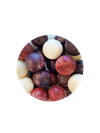 Ingredienser: Sukker, kakaosmør (22,7 %), helmelkpulver, melasse, hvetemel, sirup av invertsukker, glukosesiruppulver, isomalt (E953), maltodextrin, kirsebærpuré (0,8 %), frysetørket bringebær-pulver (0,8 %), vann, bringebærpuré (0,5 %), frysetørket kirsebær-pulver (0,4 %), konsistensmiddel (E422, E415, E414), frysetørket blåbær-pulver (0,4 %), glukosesirup, tapiokadekstrin, lakrisekstrakt (0,2 %), aroma (naturlig vanilje, hylleblomst, mandel, naturlig limeolje, anis, bringebær), emulgator (E 322), limejuicekonsentrat, risstivelse, dekstrose, salt, surhetsregulerende middel (E 330), vegetabilsk olje (raps, kokos), tapiokastivelse, konserveringsmiddel (E202).