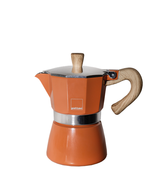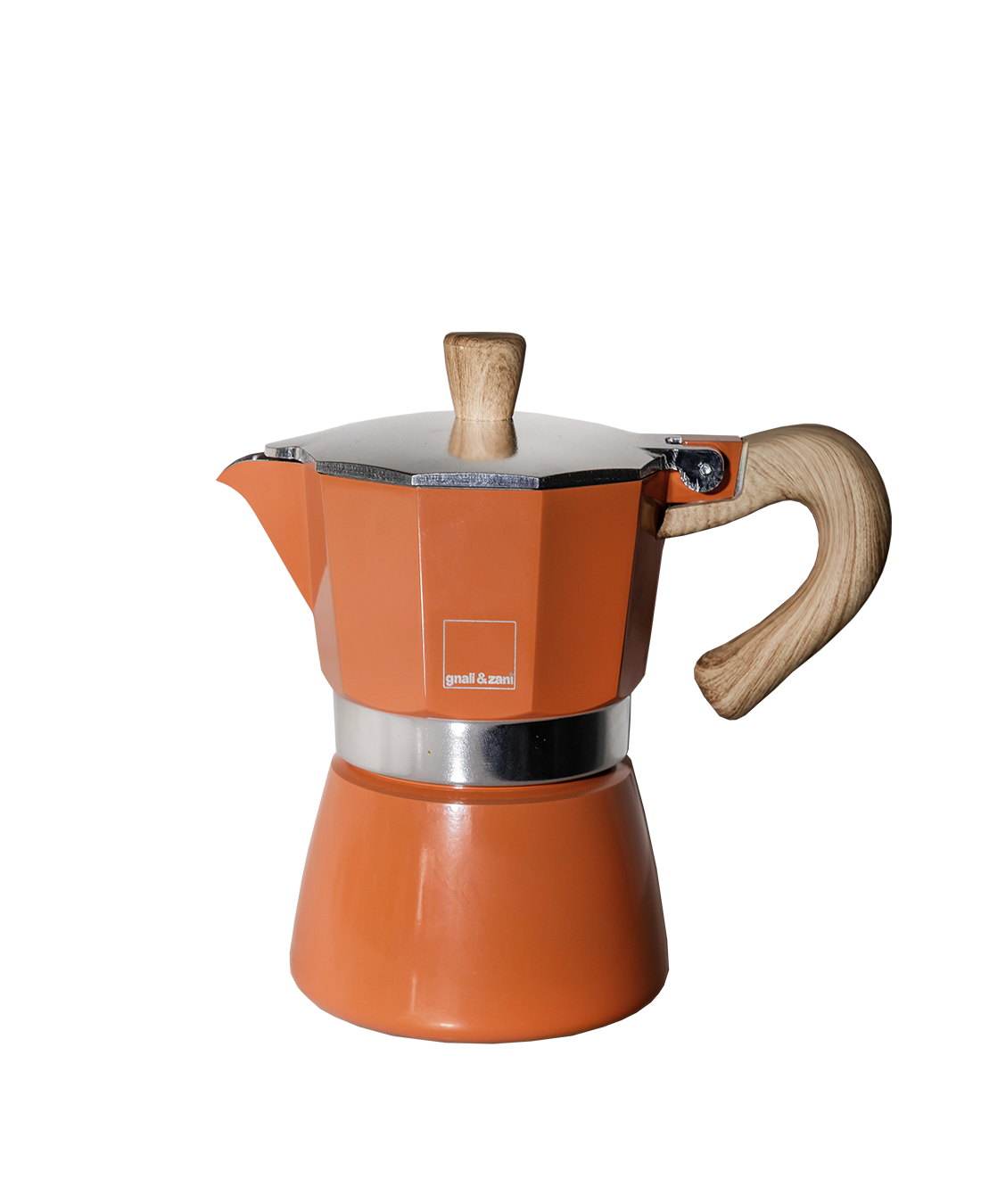 Elegant mokkakanne i moderne design fra det italienske merket Gnali & Zani i en stilig oransje farge. Kannen rommer 130 ml kaffe.