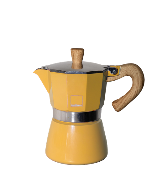 Elegant mokkakanne i moderne design fra det italienske merket Gnali & Zani i en dus gul farge. Kannen rommer 130 ml kaffe.