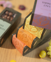Søt melkesjokolade med en sprø, gyllen kjerne, og et hint av havsalt, som gir en perfekt balanse mellom sødme, salt og krønsj.